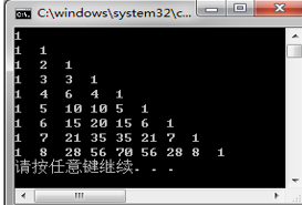 int a[9][9],i,j;//打印9行9列的杨辉三角