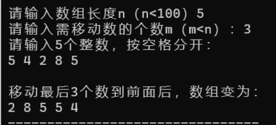 printf("\n移动最后%d个数到前面后,数组变为:\n",m);