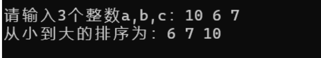 printf("从小到大的排序为:%d %d %d\n",a,b,c);