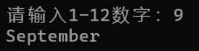 题目五:编写一个程序,用12个月份的英文名称初始化一个字符指针数组,当键盘输入整数为1到12 时,显示相应的月份名,键入其他整数时显示错误信息。