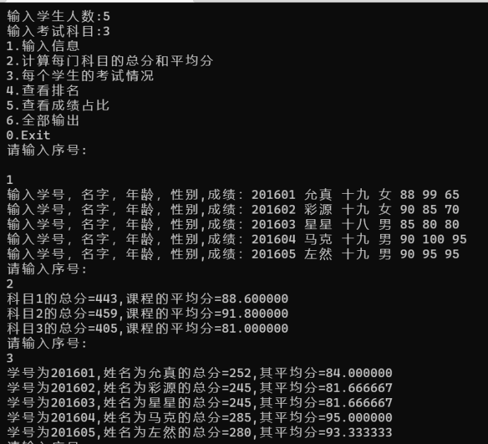 void everystu (inform stu[],int n,int m) //3.计算每个学生的总分和平均分