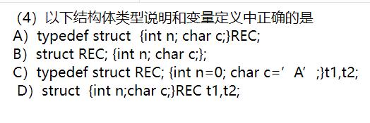 d没有typedef,rec能作为类型名,为无名结构体类型,rec是结构体变量,不是结构体类型,不能用来定义结构体变量
