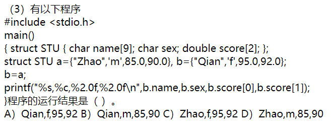 B,结构体类型声明和定义分开时,在声明后应有分号