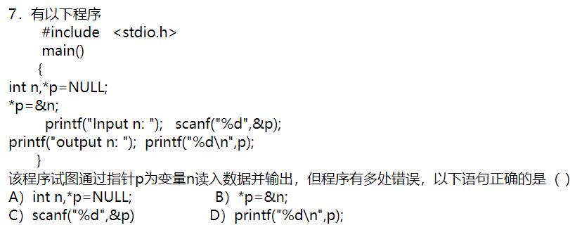 D:将一个地址输出是不对的,printf(“%d/n”,*p);