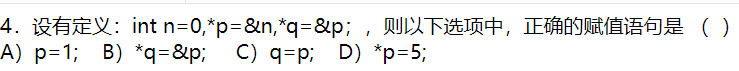 B:*p代表存储单元的值,而&n代表变量n的地址,将一个地址赋给一个值是不正确的;指针变量在定义时需要加*,而在赋值时则不用