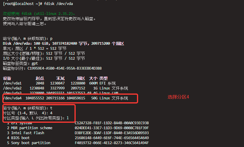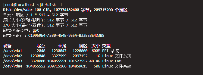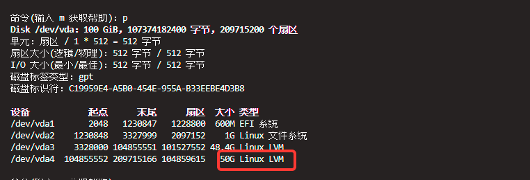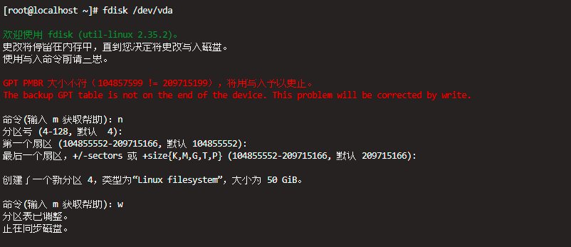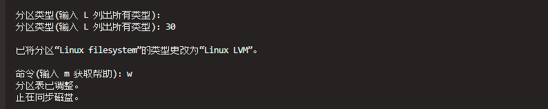 #以上步骤创建完新磁盘分区,下面进行根目录扩容