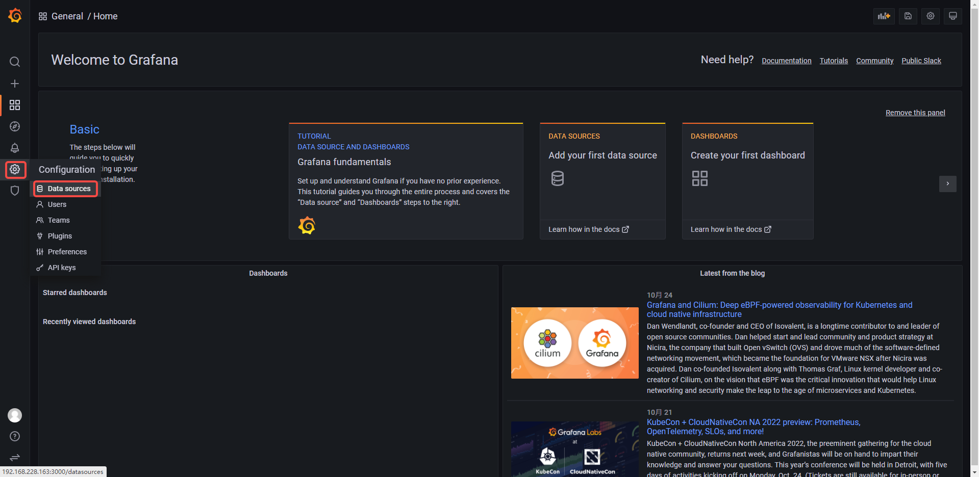http://192.168.228.163:3000/login #默认账户密码admin