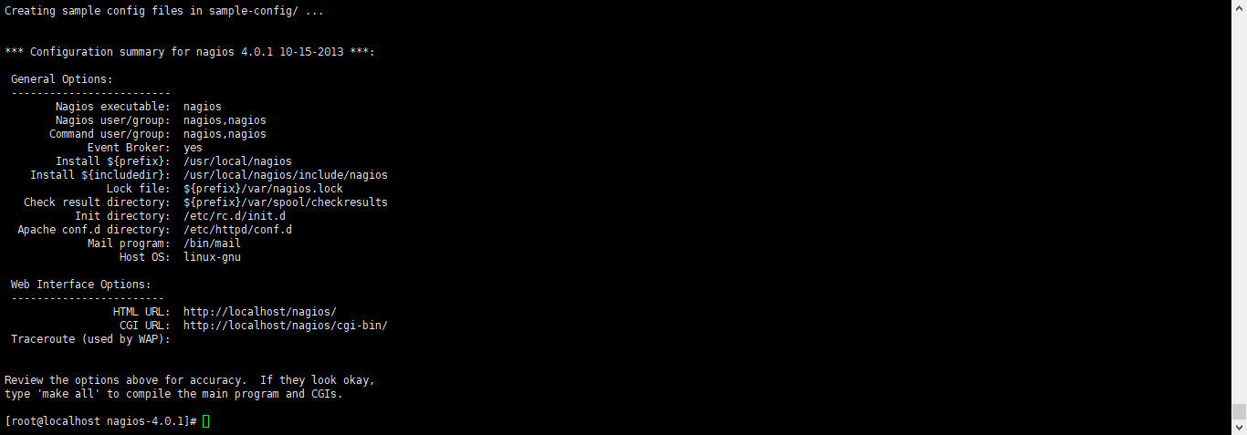 tar zxvf nagios-4.0.1.tar.gz && cd nagios ./configure --prefix=/usr/local/nagios