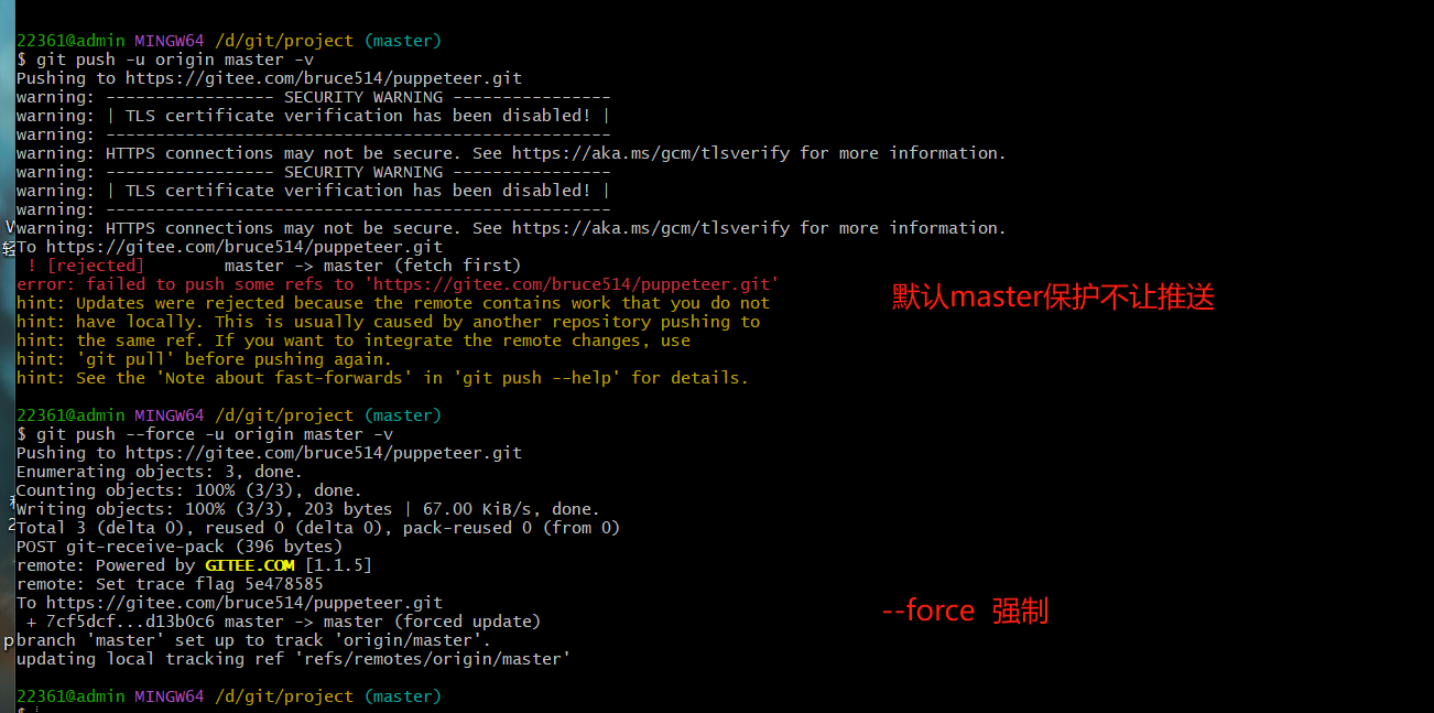 git push 地址名 本地分支:远程库分支:将暂存区代码推入远程库