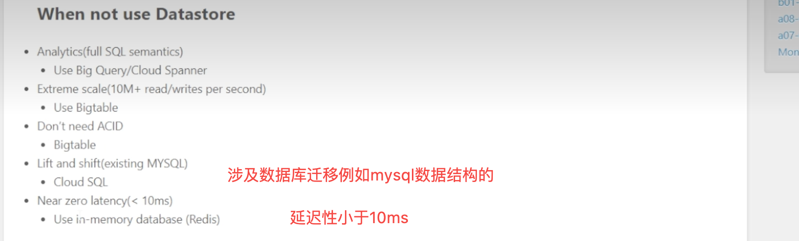 不需要ACID的情况建议使用Bigtable