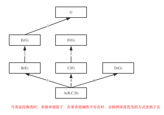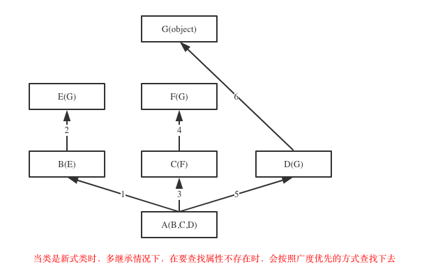 >>> F.mro() #等同于F.__mro__ [<class '__main__.F'>, <class '__main__.D'>, <class '__main__.B'>, <class '__main__.E'>, <class '__main__.C'>, <class '__main__.A'>, <class 'object'>]