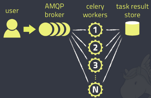 Celery的架构由三部分组成,消息中间件(message broker),任务执行单元(worker)和任务执行结果存储(task result store)组成。