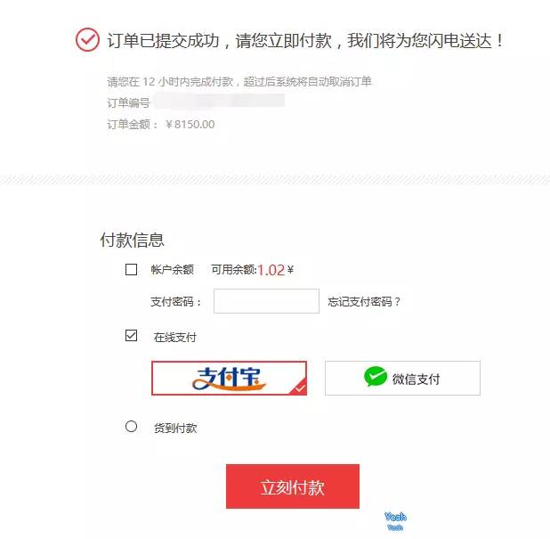 在付款页面来了,需要支付 8150 人民币,但账户里并没有那么多钱,我们使用微信支付来试一试。