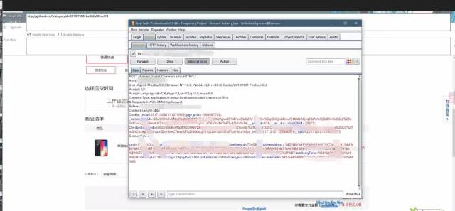 在选购了 iPhone X 的付款页面我进行了抓包,显示结果如上图所示。