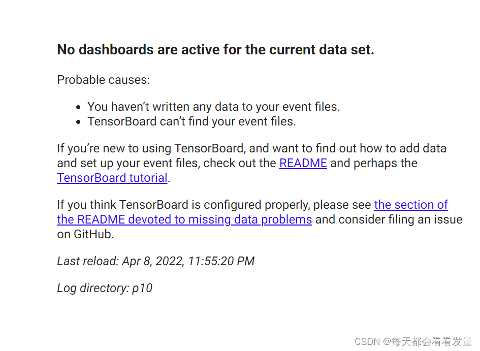 记录一下踩坑 Tensorboard在localhost:6006出现“No dashboards are active for the current data set“ 查看不到图的问题