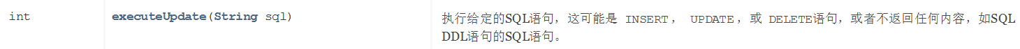 int count = stmt.executeUpdate(sql);//受影响的行数