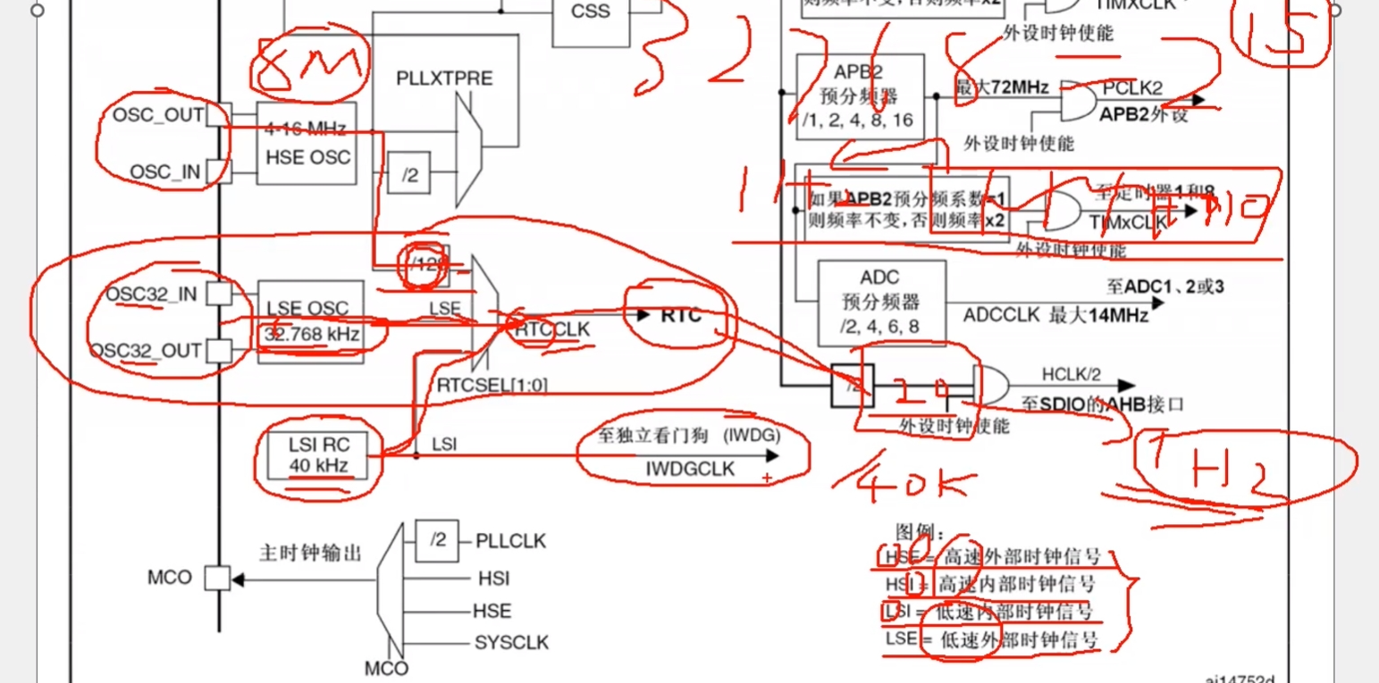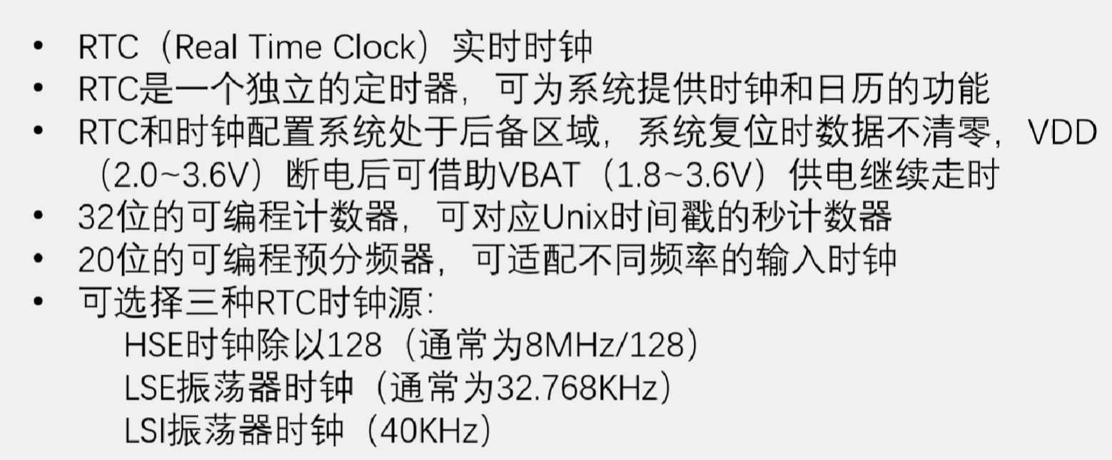 RTC的时钟来源:一般采用LSE (可以VBAT供电,且是RTC专用 32.768KHZ(2^15)使用15位计数器进行自然溢出,可以得到1HZ,计时一秒)