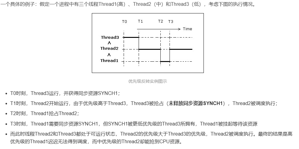 高优先级的任务被低优先级任务阻塞,导致高优先级任务迟迟得不到调度。其他中优先级的任务却能抢到CPU资源。从现象上看,好像中优先级的任务比高优先级的任务具有更高的优先级。
