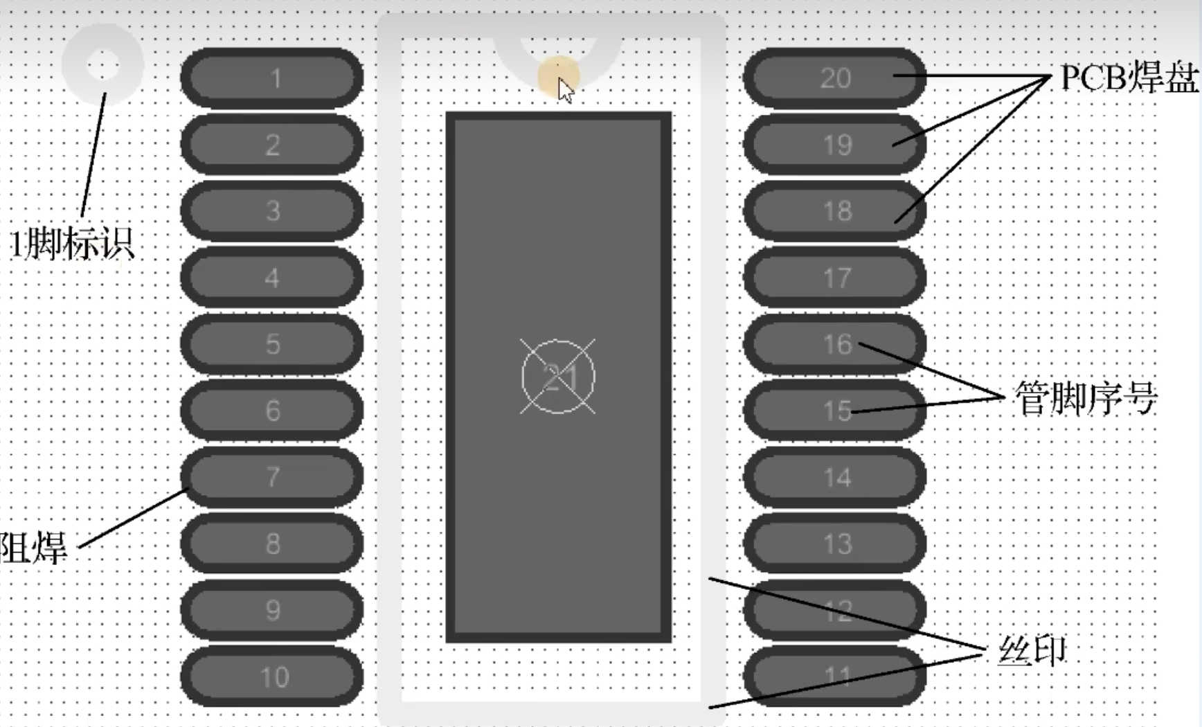 元件起名、放置引脚(放置时按tab可以进行设置)、指定封装(footprint)