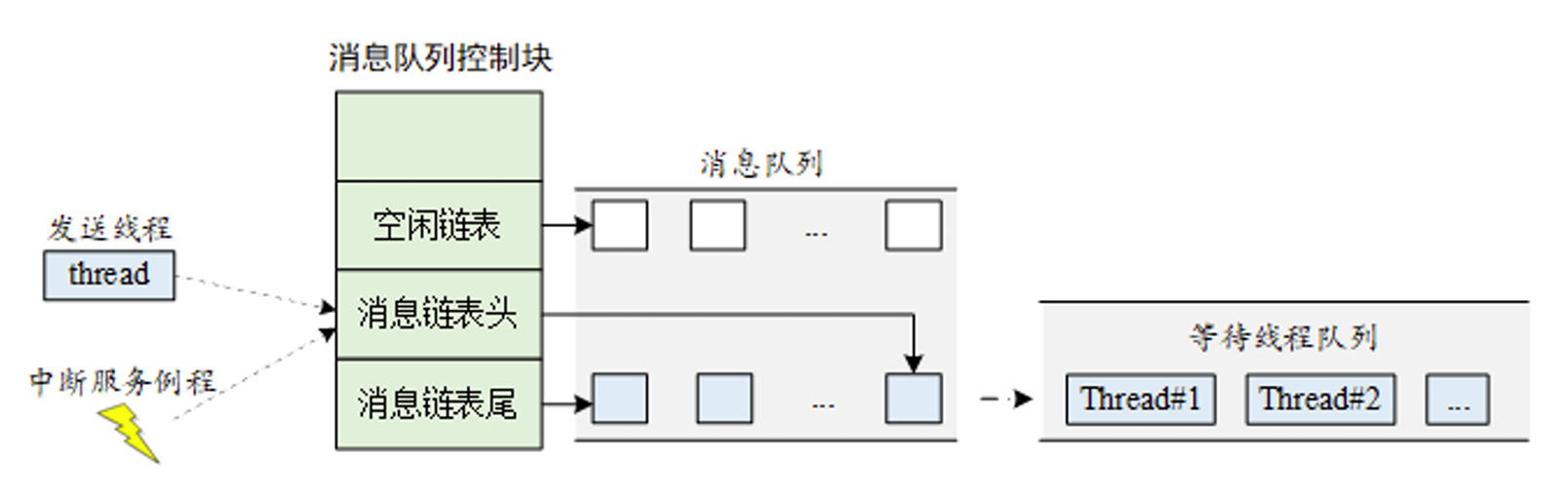 发送者每次将消息发送到队尾,接收者每次从队首取消息。当有多个消息发送到消息队列时,通常将先进入消息队列的消息先传给线程, 也就是说,线程先得到的是最先进入消息队列的消息。但是当发送紧急消息时,从空闲消息链表上取下来的消息块不是挂到消息队列的队尾,而是挂到队首,这样,接收者就能够优先接收到紧急消息。