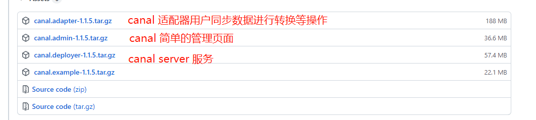下载链接地址 :Release v1.1.5 · alibaba/canal (github.com)