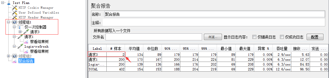 添加路径:线程组_添加_逻辑控制器_仅一次控制器。