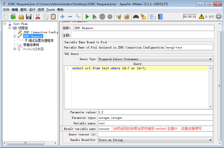 五、jdbc请求中结果变量名称(Result variable name)的用法