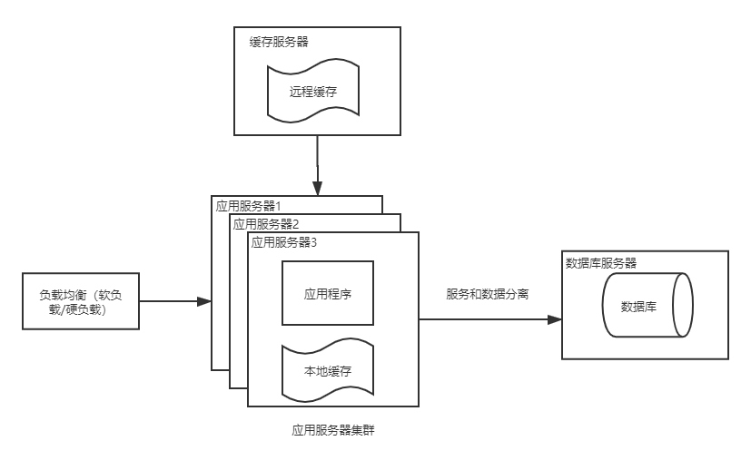 4、并发量更大的情况下,应用服务器就成为了整个网站的瓶颈,单一的应用服务器资源有限,高并发情况下连接很快就会超限,这时,我们就需要部署应用服务器集群,利用负载均衡器分散访问流量,减少单台服务器的压力