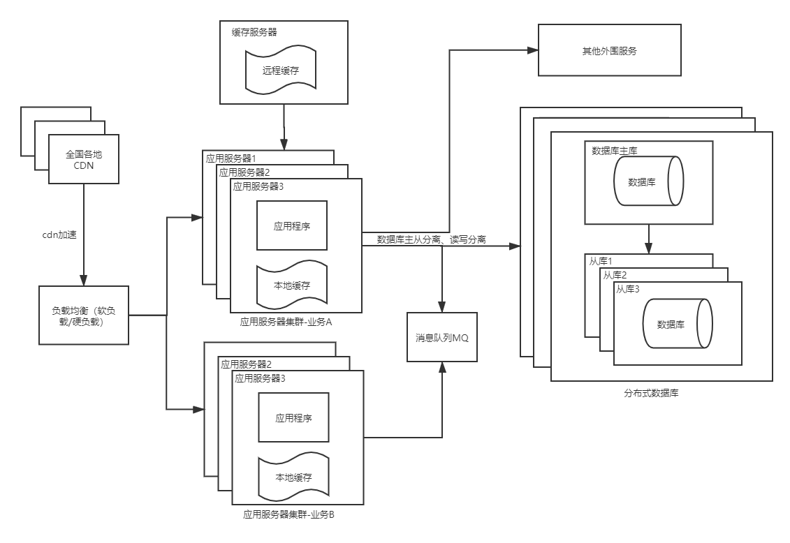不到不得已时,网站更常用的数据库拆分手段是业务分库,将不同业务的数据库部署在不同的物理服务器上。