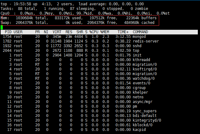load average: load average后面的三个数分别是1分钟、5分钟、15分钟的负载情况。