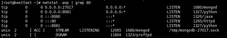 查看80端口被哪个进程占用 netsta -anp | grep 80