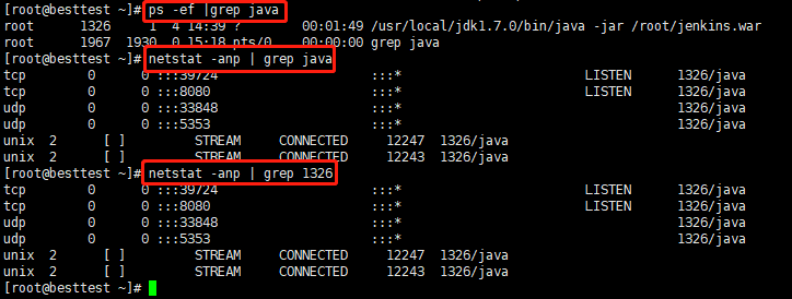查看某个进程占用哪个端口 netstat -anp | grep java 或 netstat -anp | grep 1326