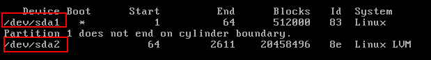 截图中代表有两个分区,dev代表设备 sda1/sda2代表分区的名称