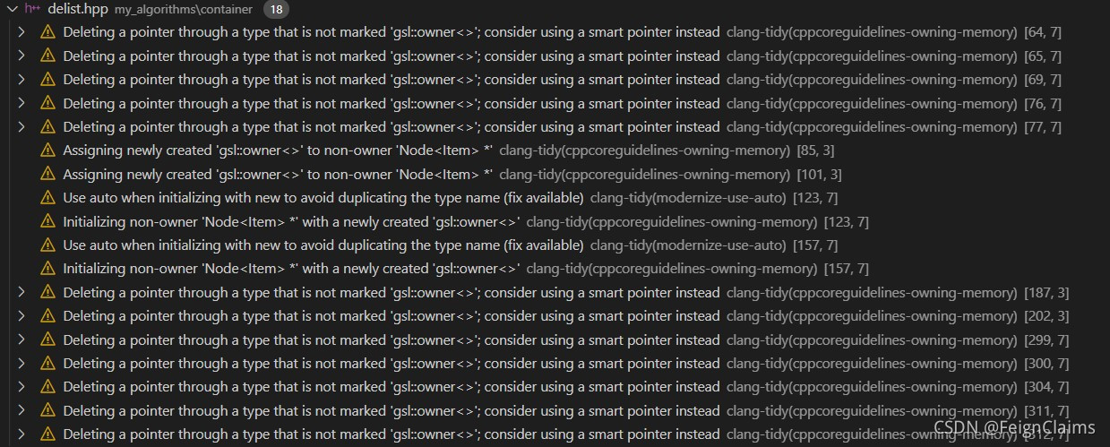 - Clang-Tidy提供了强大的「静态检查」支持,并对于部分代码提供「快速修复」。具体请见Clang-Tidy Checks。这里我主要添加了对于「Google 开源项目风格指南(有中文版,但翻译版本滞后,需注意)」「Cpp Core Guidelines」和性能、潜在的bug、移植性、现代C++的检查。