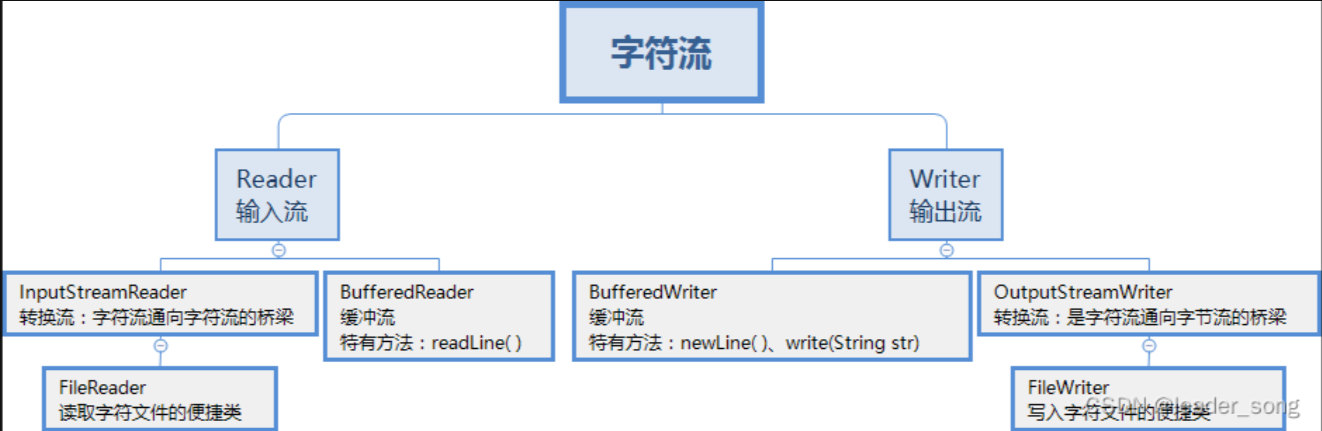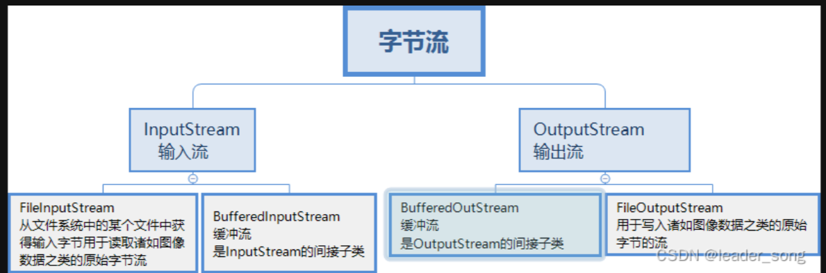 - 区别:字节流可以处理所有文件类型以及二进制数据(音频,图像...),字符流用于处理文本数据;