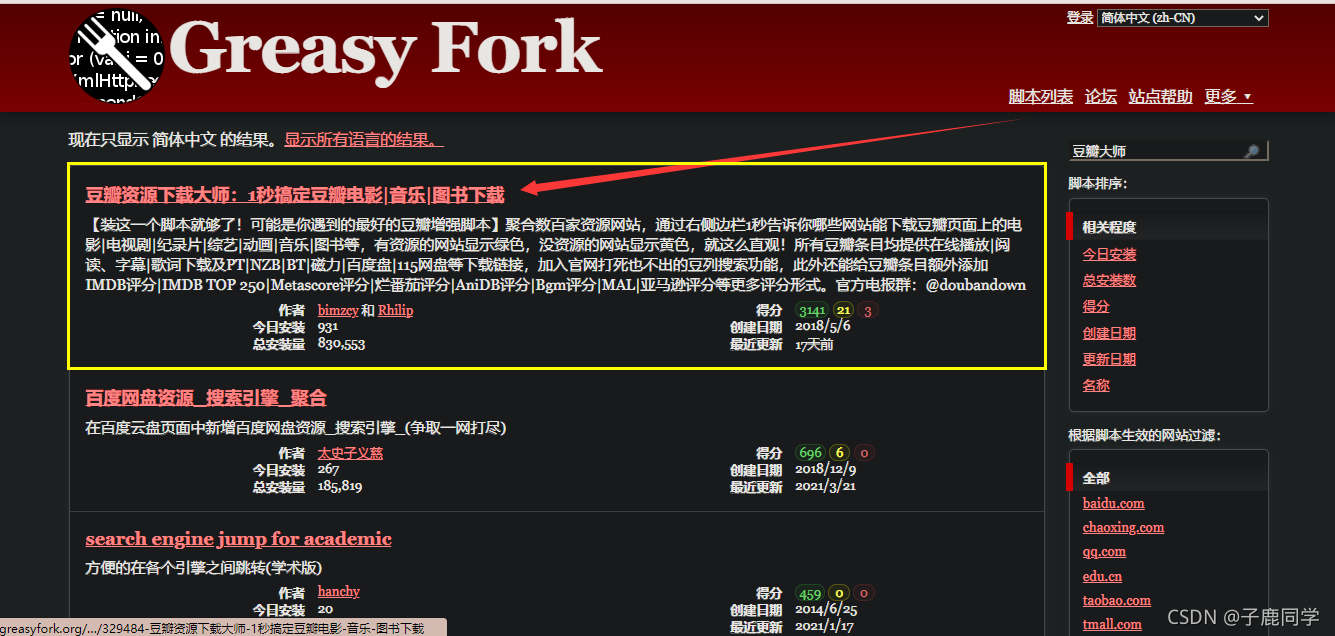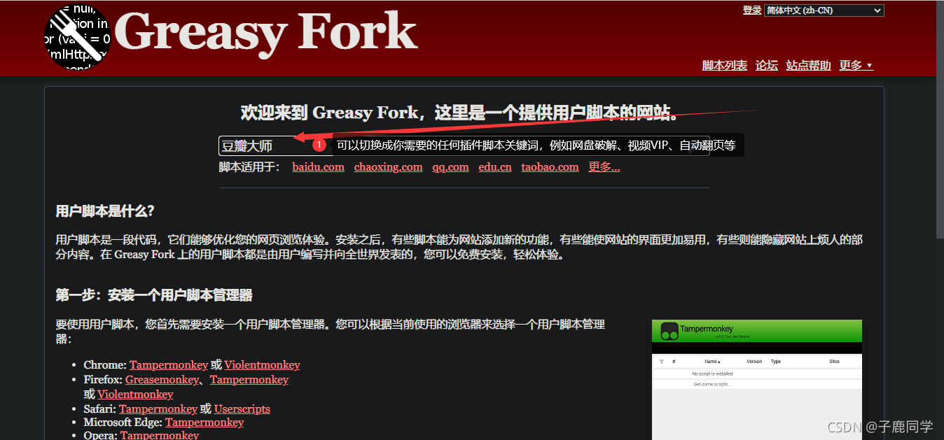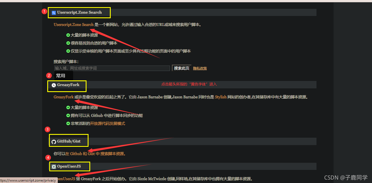 - 然后在打开的界面中,可以在以下几个网站搜索脚本