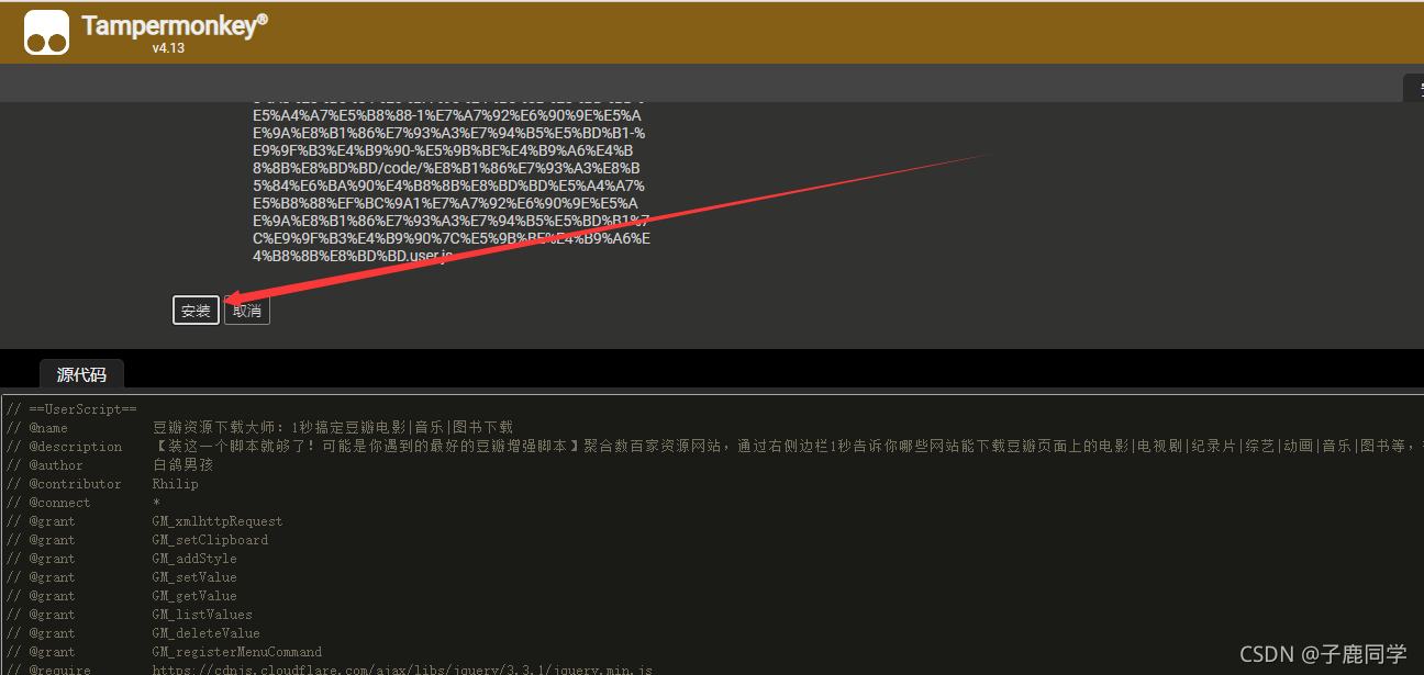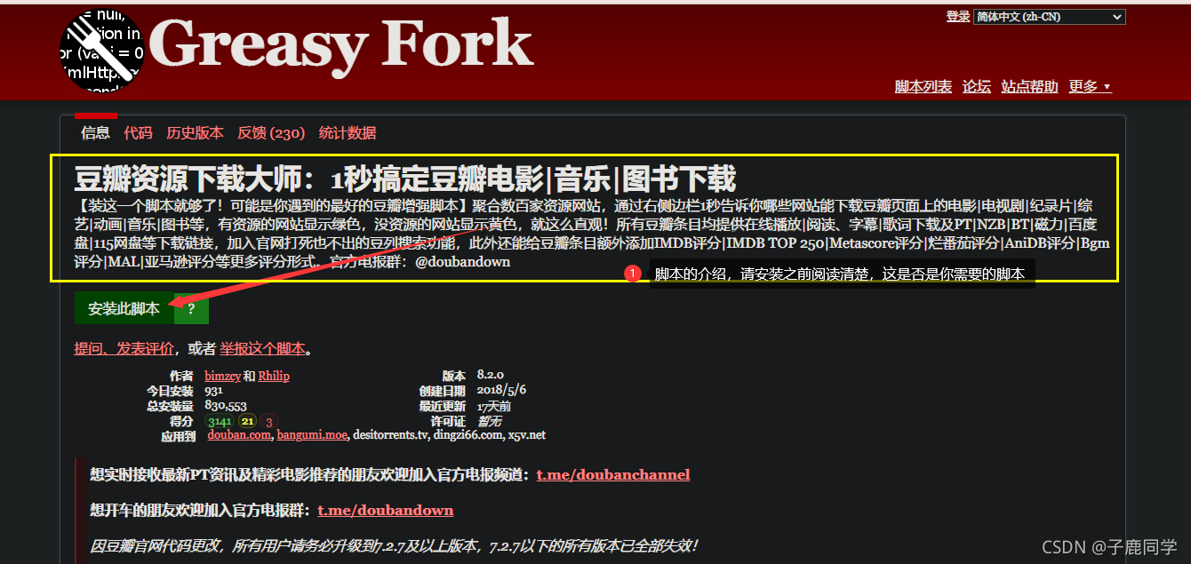 - 进入后阅读脚本介绍,确认后点击“安装此脚本”
