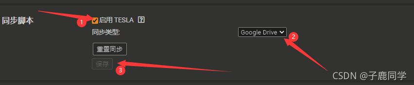 - 接着下拉找到“同步”选项,跟着图片设置(这样你以后下载的所有脚本就会自动同步到Google云盘中,以后只要选择同步,就可以自动导入脚本,不怕脚本丢失了)