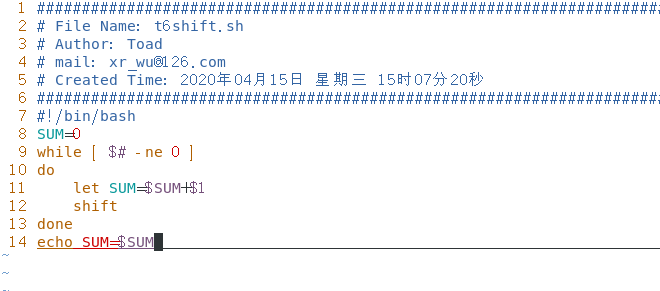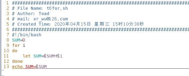 6.编写脚本实现计算用户输入参数数字的和,分别用 shift 和 for 循环实现。