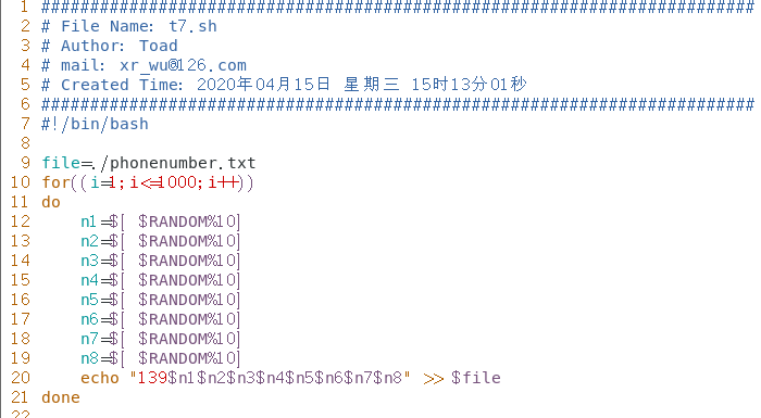 7.编写脚本,生成一个phonenumber.txt文件,文件内容为随机产生以139开头的手机号1000个,每个手机号占一行。