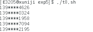 8.在第7题产生的1000个电话号码中抽取5位幸运号码,并显示,要求只显示前3三位数字和后4位数字,中间四位用*代替。