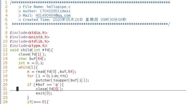 父进程 fork 出一个子进程,通过无名管道向子进程发送字符,子进程收到数据后将字符串中的