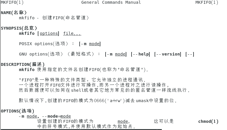 (1)通过命令mkfifo创建管道