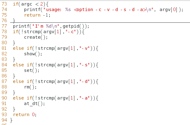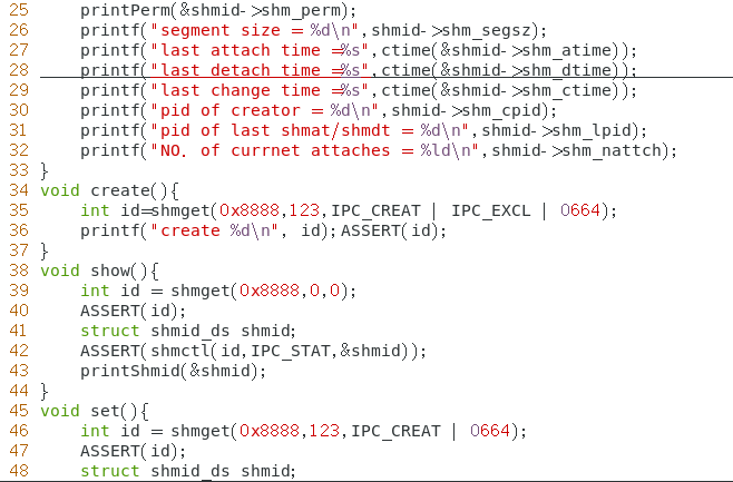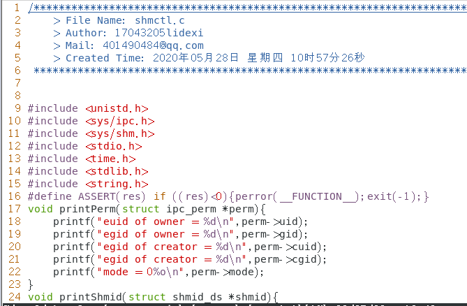 例:编写一个程序 shmctl 可以用来创建、删除内核对象,也可以挂接、卸载共享内存,还可以打 印、设置内核对象信息。具体使用方法具体见下面的说明: ./shmctl -c : 创建内核对象。