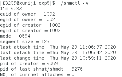 先在另一个终端执行 ./shmctl -a ,然后在当前终端执行 ./shmctl -v