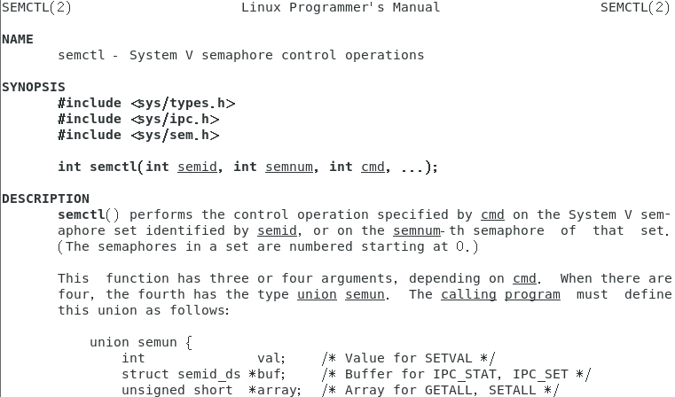设置和获取信号量值的函数 semctl : man 2 semctl