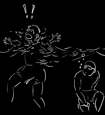 也请注意这幅图片里,我故意把人的半个脑袋没在水里,也就是说,在水里,这样的嘴巴在水面偏下的位置是很正常的,不用惊慌。手或脚稍微加点力就上去了