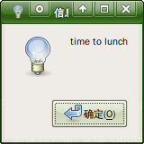 MAIL=/dev/null DISPLAY=:0 zenity --info --text "time to lunch"