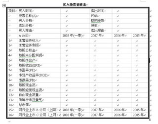 对一个买卖股票时容易受心理情绪影响的人来说,在买卖时认真填写下面这张表,仔细评估一下要买入的公司股票,是一个控制冲动的好办法。这是我利用业余时间完成的,给大家参考,见下图。