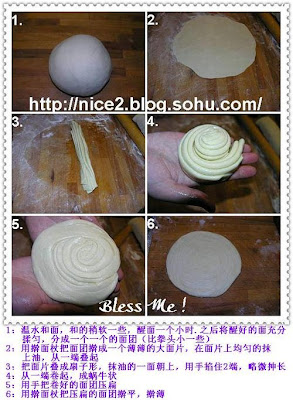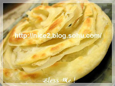 双面都烙成金黄色即可出锅,装入盘中轻轻从饼的中心向上拉开,即可看到饼层